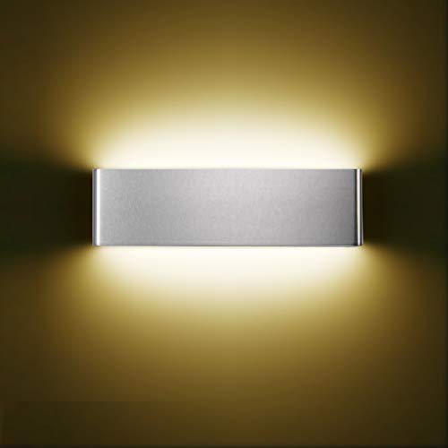 XIAJIA-12W LED Lámpara de pared Interior,Moderna Apliques de Pared,Moda Agradable Luz de Ambiente, AC85-265V, Longitud 30cm,Blanco Cálido/Plata/aluminio cepillado
