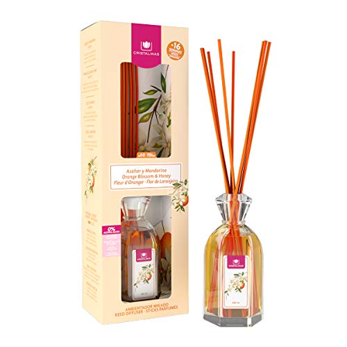 CRISTALINAS. Ambientador Mikado Clásico. Difusor con Varillas de ratán. Formula sin Alcohol. Máxima duración, más de 16 semanas. 180ml de Capacidad. Aroma Azahar.
