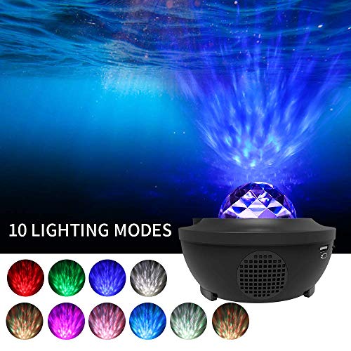 LBell Lámpara Proyector, Lámpara de Nocturna Estrellas & Océano 2 in 1 con Rotación y Música, Temporización y Remoto Bluetooth 10 Modos de Luz planetario proyector Estrellas para Cumpleaños y Fiesta