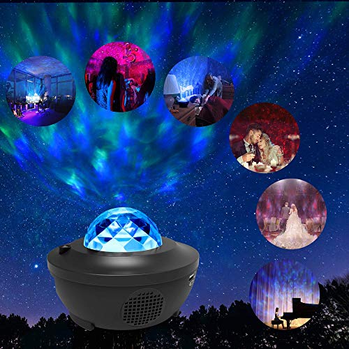 - ★ Proyector de luz nocturna: este hermoso proyector de luz nocturna no solo es un regalo interesante para los niños, sino también una buena opción para una fiesta. La luz nocturna del proyector de estrellas es adecuada para baile / fiesta / cumpleaños / DJ Bar / Karaoke / Boda / Show / Club / Pub. Se puede utilizar como luz nocturna de brillo ajustable, luz de olas oceánicas, luz de fiesta en el escenario, bola de discoteca, luz de decoración de sala de juegos, iluminación de fiesta.