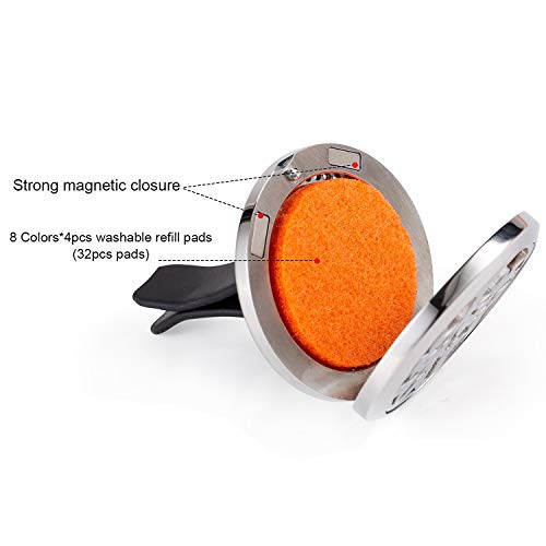 - ※ CAMBIE EL ARAZO FÁCILMENTE: con 32 piezas de rellenos de diferentes colores, los cojines son lavables y reutilizables, sin dejar residuos. Puede cambiar los cojines fácilmente cuando desee cambiar el aroma, sin cambiar el difusor del venteo del auto, que es un gran ahorro tú.