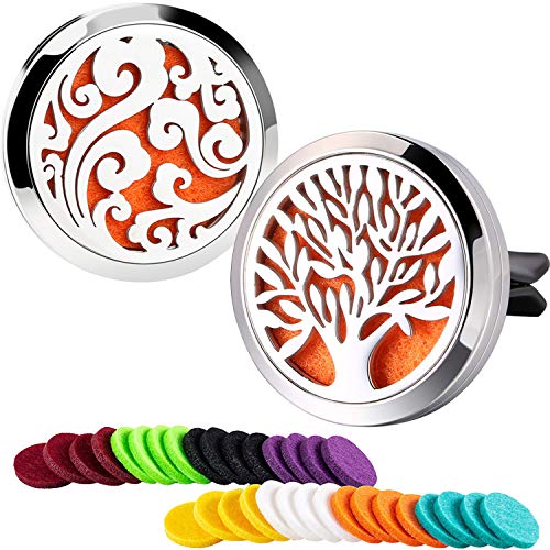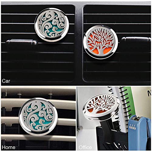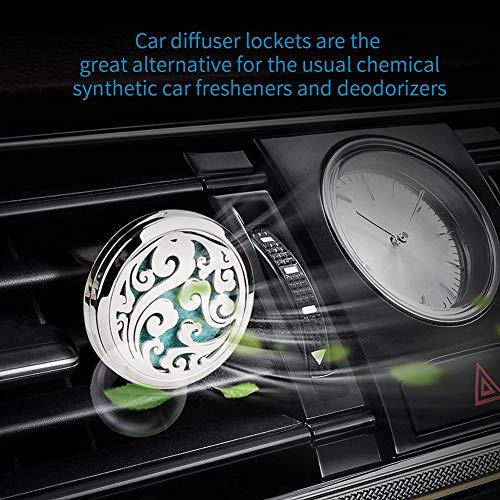 AUCOOMA 2 UNIDS Coche Aromaterapia Aceites Esenciales Difusor Ambientador 30mm Acero Inoxidable Negro Locket Vent Clip + 32 unids Almohadillas de Recarga(No Incluye aceites Esenciales)