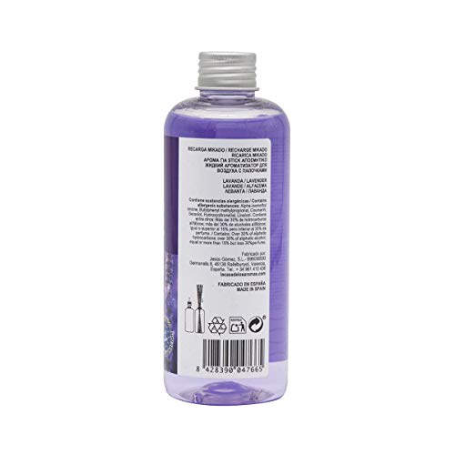- Ambientador Mikado Reposición Lavanda. El aliado perfecto para rellenar su mikado habitual. Desprende un aroma floral, crea un ambiente discreto y delicado, con efectos equilibrantes, tonificantes y relajantes por lo que ayuda a conciliar el sueño.