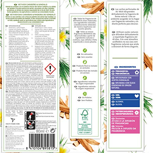 Botanica by Air Wick Varitas Perfumadas - Ambientador Mikados, Esencia Para Casa con Aroma a Vetiver Caribeño Y Sándalo - 100 ml