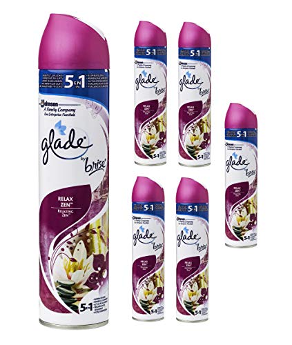 Glade Ambientador Aerosol, Eliminación De Malos Olores, Fragancia Relax Zen, Con Aceites Esenciales [6 X 300Ml, Pack De 6] 6 unidades 350 g