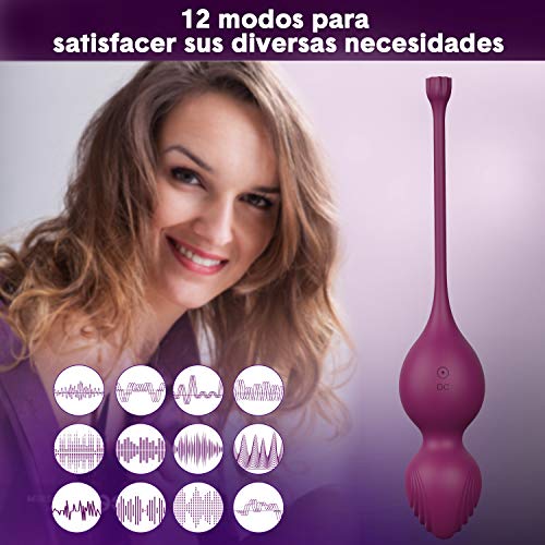 Maksexy Bolas Chinas para Mujer - 12 Modos para Ejercicios Kegel de Control Remoto y Reafirmantes de MĂșsculo PĂ©lvico