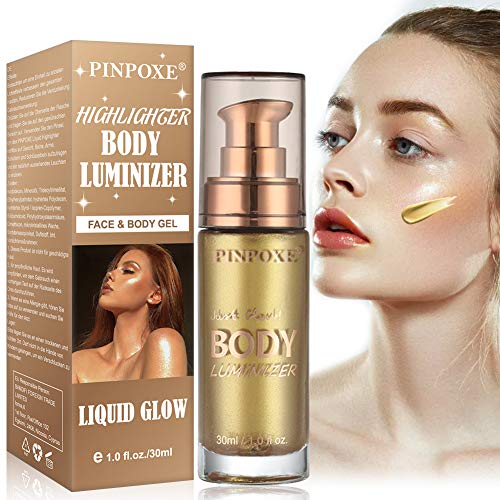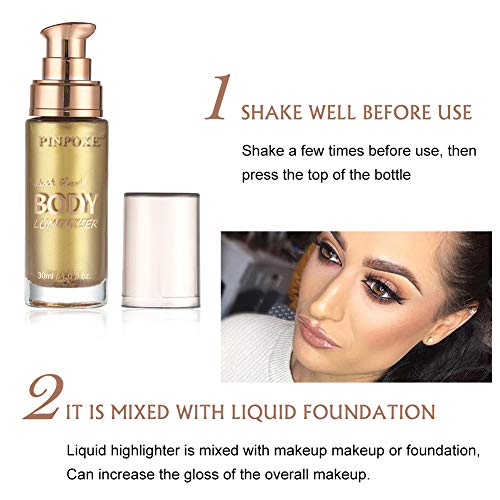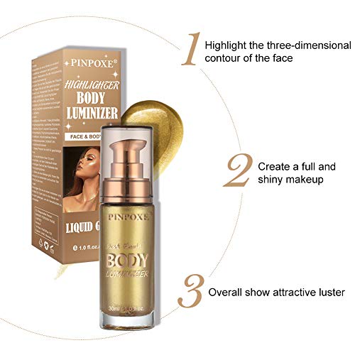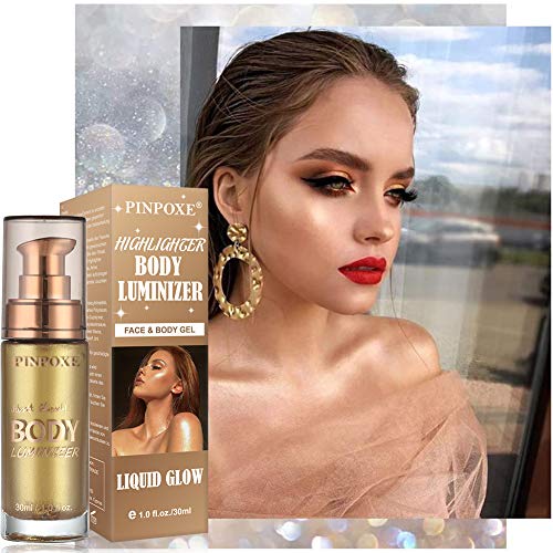 Iluminador Líquido, Líquido Resaltador, Highlighter Liquido, Highlighter Maquillaje, Liquid Highlighter Makeup, Contouring Iluminador Corrector Maquillaje Liquid Shimmer para Rostro y Cuerpo - 30ML