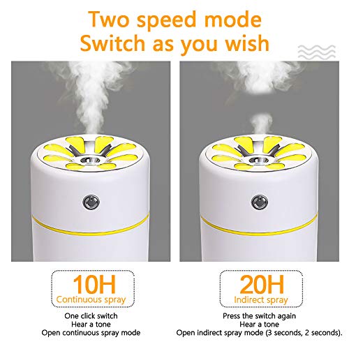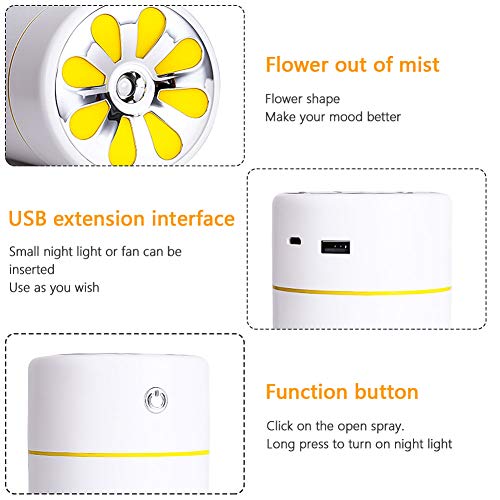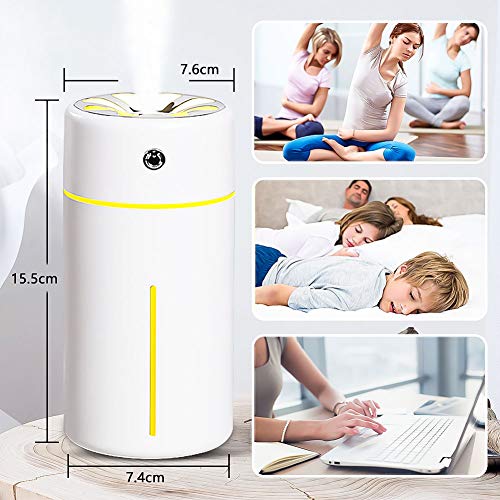 - * Uso en múltiples escenas: 15.5cm * 7.4cm * 7.6cm Tamaño, 360ml de gran capacidad, Compacto y liviano, llévelo con usted. Este humidificador es perfecto para su habitación, oficina, habitación de bebé, para dormir, en automóvil o para viajar.