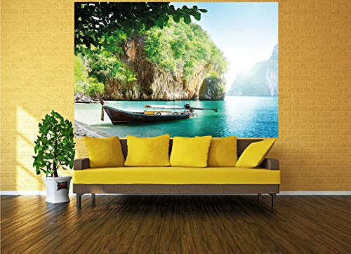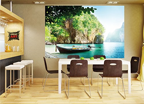 - ✅ 140 cm x 100 cm – 1 parte ✔ Póster XXL playa con barco para el diseño de su habitación ✔ El paraíso en la tierra como mural