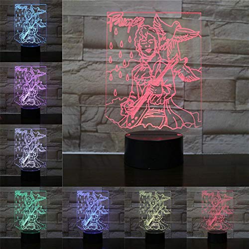 Solo 1 pieza Personaje de dibujos animados Guitarra Luces de color 3D Niños Regalo de cumpleaños Instrumento musical Lámpara LED Decoración para el hogar Luz nocturna