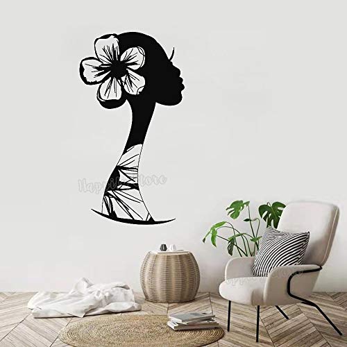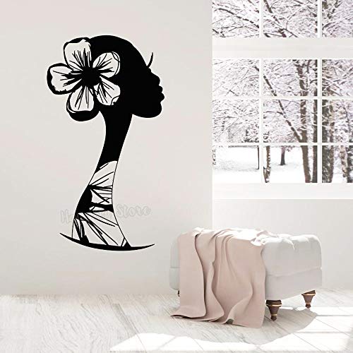 wZUN Mujer Cara Flor Vinilo Pared calcomanía peluquería decoración Peinado boceto Pegatina decoración del hogar Sala de Estar 22X42cm