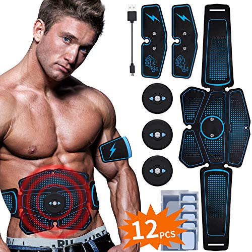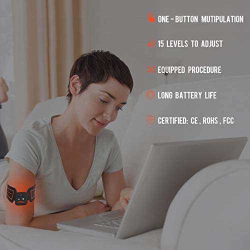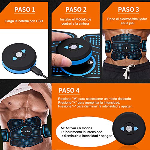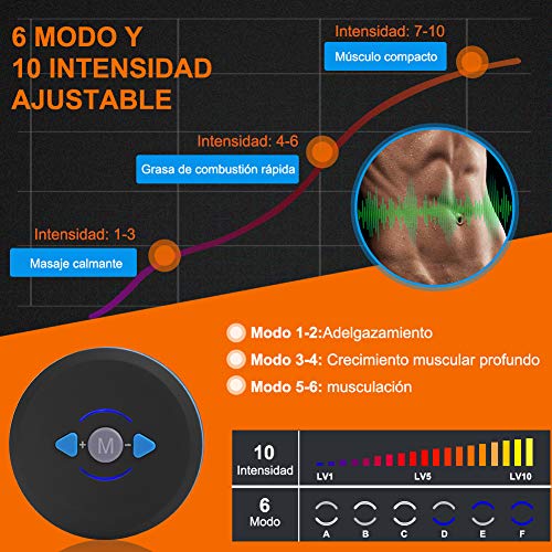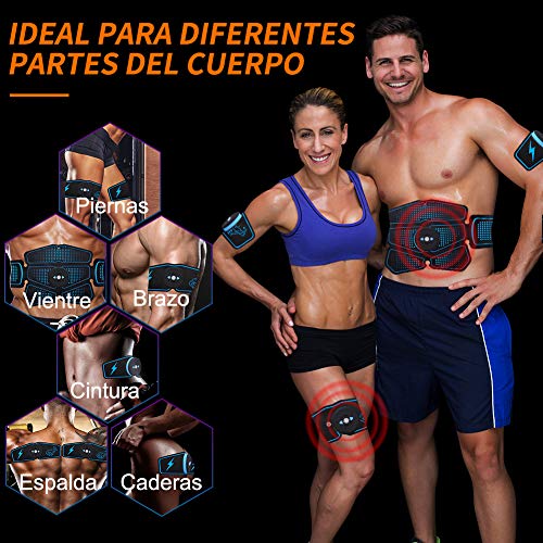 - 【Alta tecnología】: tome EMS (estimulación muscular eléctrica) que puede ayudar a tensar y fortalecer los músculos del cuerpo. 23 minutos de uso por día significa 2.000 metros de carrera o 40 minutos de abdominales y le ahorra tiempo y energía para el culturismo
