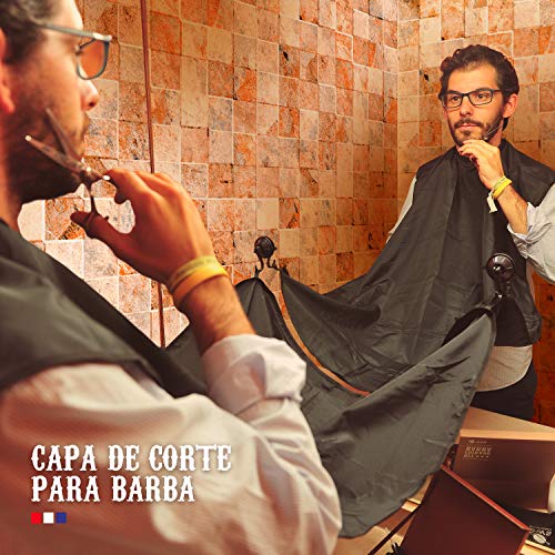 - ✅ KIT DE AFEITADO - Capa de peluquero + 2 ventosas para facilitar la fijación del delantal + 1 peine de barba simétrica + 1 peine de barba / bigote y pelo y su funda OFRECIDA + 1 par de tijeras + 1 bolsa de transporte. Delantal DIFERENTE DE OTROS MODELOS, de calidad profesional, gracias a los bordes curvos, los pelos no escapan del delantal barbudo.