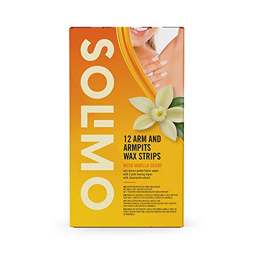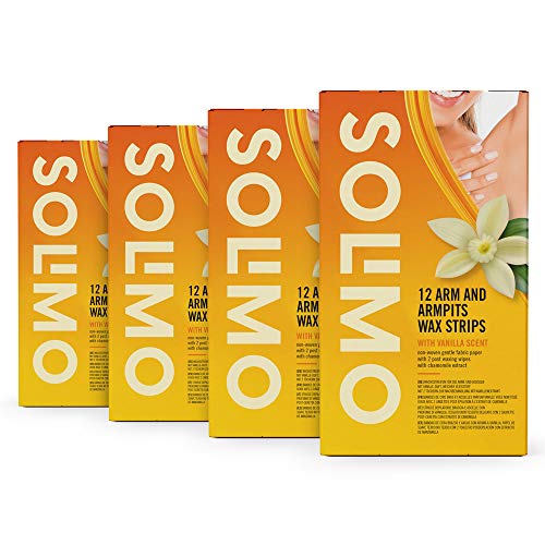 Marca Amazon - Solimo - Bandas de cera brazos y axilas con aroma de vainilla, papel de suave tejido no tejido con 4 toallitas posdepilación (4x12 bandas de cera)