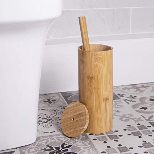 - ✔️ BELLEZA NATURAL: agregue un toque de naturaleza a su baño con este cepillo y soporte para inodoro, que tiene un diseño simple pero audaz que muestra cada nudo y grano en la belleza natural de la construcción duradera de bambú.