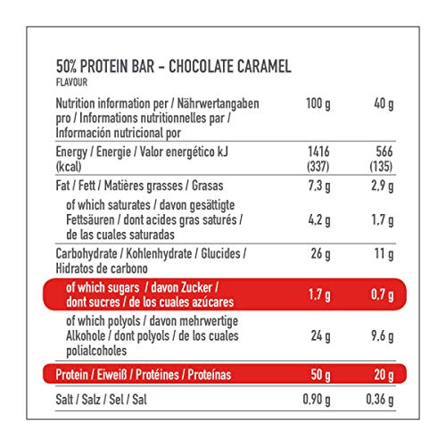 Premier Protein Protein Bar Chocolate Caramel 24x40g - Barras de Proteína con Bajo Contenido de Azúcar