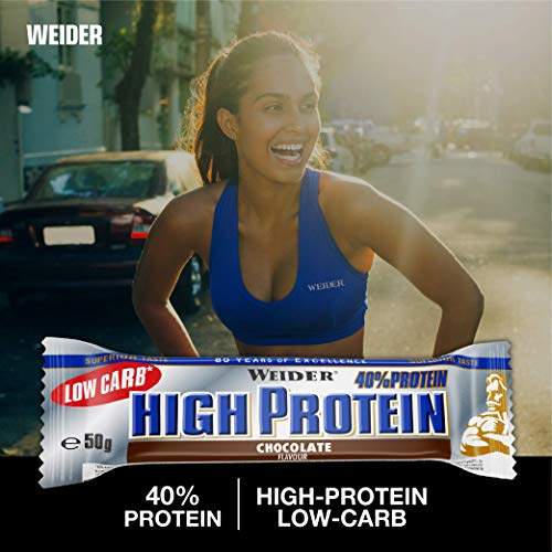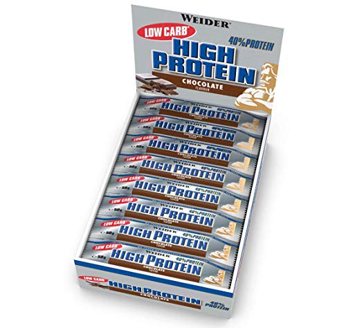 Weider 40% Protein Low Carb. Barrita alto contenido en proteínas sin hidratos de carbono. 40% de proteínas por barrita. Sabor Chocolate (24 x 50 g)