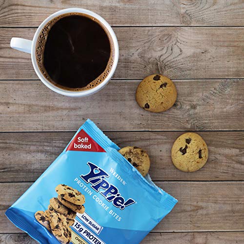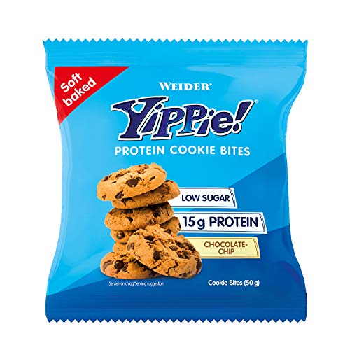 Weider Yippie Cookies. Galletas con Proteína y Chocolate Puro. Sin aceite de palma (6x 50 g). 15 g de proteínas por bolsita. Bajas en azúcar.