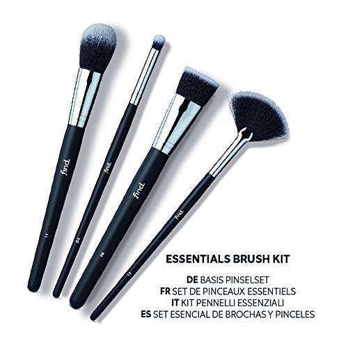 FIND - Kit esencial - Pincel para sombras, para base de maquillaje, para colorete y pincel abanico para iluminar (4 pinceles) - n.? 04, n.? 08, n.? 11, n ?12