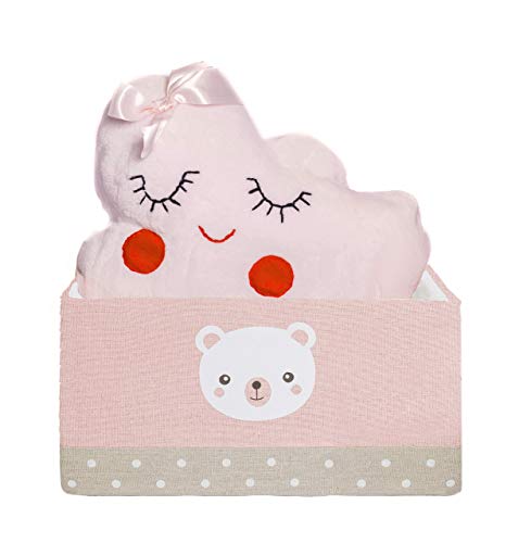- Contenido De La Canastilla: - Caja Madera Rosa Con Nubes Multiusos Con Asas De Cuerda . - Peluche Nube Rosa.