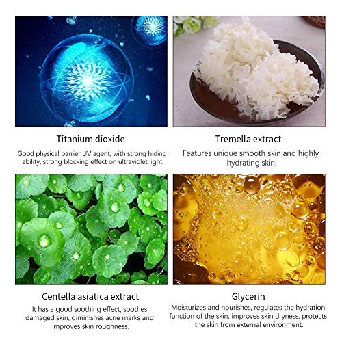 - 【Formula Fórmula natural para plantas】 Contiene una variedad de ingredientes naturales para el cuidado de la piel, como extracto de Centella asiática, extracto de Tremella, etc. También cuida la piel cuando se aplica maquillaje.
