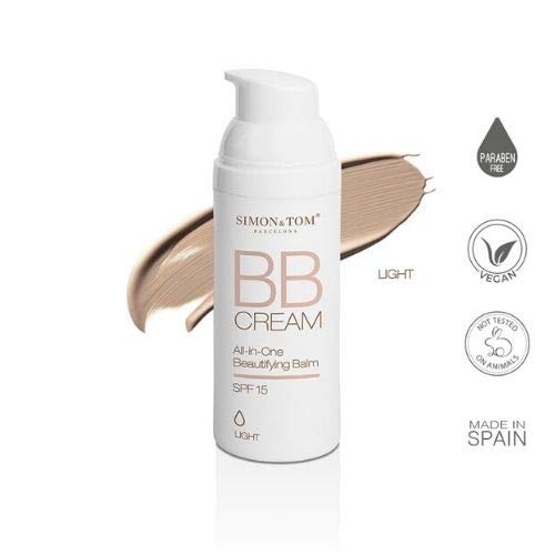 Simon & Tom – BB Cream – 3 Tonos – 50ML – Hidrata y alisa la piel con protección SPF 15 (Claro)