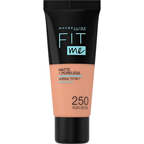 Maybelline New York - Fit Me, Base de Maquillaje Mate Afina Poros, Tono 250 Sun Beige - 30 ml