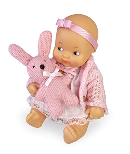 - El muñeco Barriguitas viene vestido con ropita de bebé rosa, un gorrito y un peluche