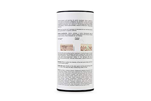 - Sugerencia de uso: Su presentación en forma de lápiz, con un dispensador pequeño permite una aplicación precisa directamente sobre las manchas en cualquier parte del cuerpo. Se puede aplicar a diario, por la mañana o por la noche, complementándolo con una crema hidratante protectora.
