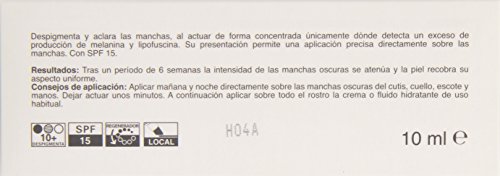 - Ventajas: Contiene exfoliantes enzimáticos para favorecer la regeneración celular y protección solar SPF 15. Su uso está indicado para pieles con varias manchas localizadas distinguidas.