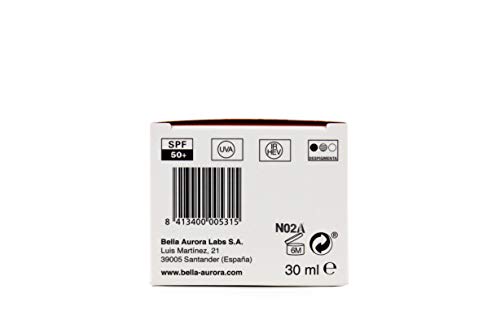Bella Aurora Crema Facial Protector Solar Pre-Base Maquillaje Perfeccionadora SPF 50+ Anti-Manchas Protege y Repara No Comedogénico, 30 ml