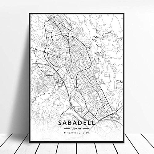 Impresiones Sobre Lienzo Sabadell España Póster De Lienzo Artístico De La Ciudad En Blanco Y Negro,Arte Retro Simple Moderno,Imagen De Latitud Y Longitud,Decoración Del Hogar,Póster De Impresión
