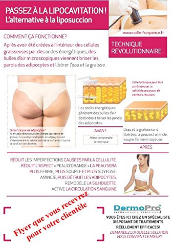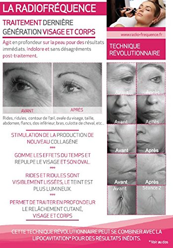 - Cabezal RF bipolar y Cabezal RF tripolar para el rostro. Cabezal multipolar para el cuerpo. Cabezal bipolar vacuum para celulitis. Cabezal cavitación 40Khz para el cuerpo. Para conseguir los mejoreres resultados es importante usar un gel específico con alta conductividad. DermoRef con 15% de DMAE para radiofrecuencia y DermoCav con 12% activos lipolíticos. Buscar en la barra de búsqueda de Amazon respectivamente B07ZJQLTB4 y B07ZJPLVFQ