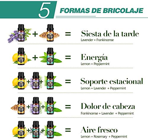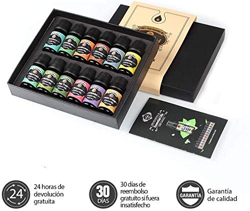 - ? Calidad 100% pura y terapéutica: todos los aceites esenciales naturales se prueban mediante cromatografía de gases para garantizar la mejor calidad. Sin aditivos, parabenos ni excipientes. Compatible con veganos y vegetarianos