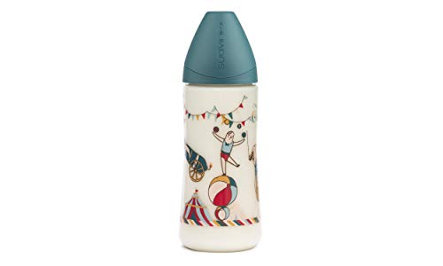 Suavinex - Biberón Bebé Tetina Anatómica Látex, 360ml. Biberón +6 Meses. Talla 2 Flujo Denso. 0% BPA. Diseño Forzudo Le Cirque, Color Verde