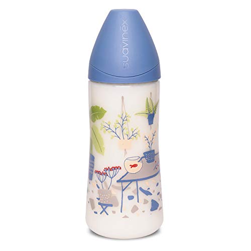 Suavinex, Biberón Con Tetina Anatómica De Silicona, Azul Botanical, 360ml