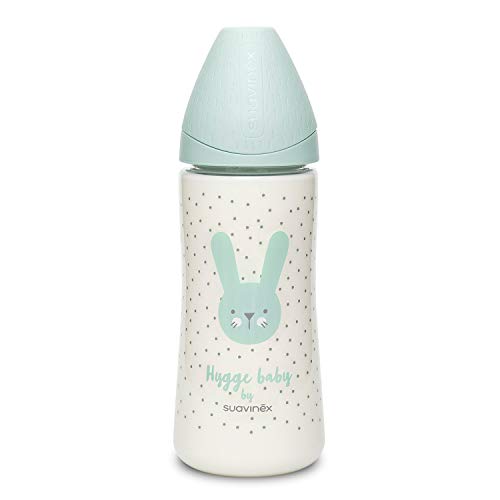 Suavinex Biberón Premium Tetina Redonda de Silicona Flujo Denso 0% BPA, 360ml, Rabbit Verde