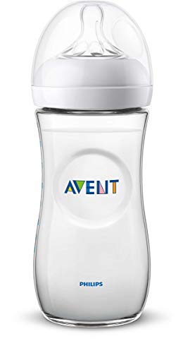 Philips Avent Biberón Natural SCF036/17 - Biberón de 330 ml con tetina con flujo para recién nacidos, diseñada para imitar el tacto del pecho, 0% BPA, 6m+, color transparente