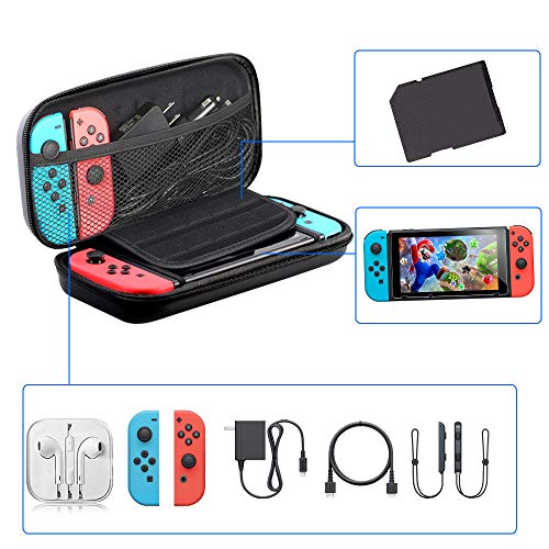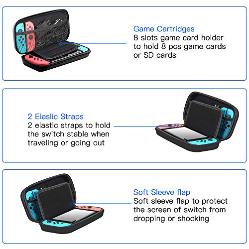 - Estuche de transporte de gran capacidad de almacenamiento: mantenga su Nintendo Switch libre de rasguños, polvo, etc. Un gran bolsillo de malla con cremallera proporciona espacio de almacenamiento seguro para algunos accesorios pequeños del Nintendo Switch, como un cargador pequeño, cable de carga, banco de energía delgado, auriculares, y Alegría adicional, fácil de cerrar y fácil de llevar. También se construye con 8 ranuras para tarjetas de juego, lo que le permite llevar y cambiar sus juegos