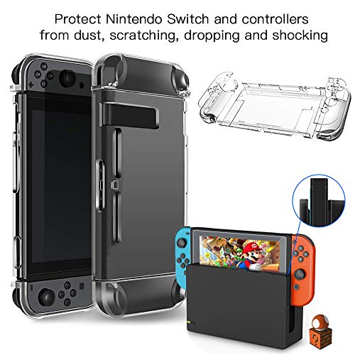 - El kit completo de protectores para accesorios de interruptores de Nintendo - Estuche para mesa de juego, 2 piezas de funda Jon-Con y 2 piezas de hoja de Jon-Con protegen el interruptor Nintendo del polvo o los arañazos El soporte para juegos proporciona 3 ángulos para elegir según tus necesidades; El protector de pantalla Nintendo Switch protege la pantalla del polvo, arañazos y caídas; 2 pares de tapas de agarre para el pulgar protegen el agarre del pulgar del polvo; Cuerda portátil hecha esta