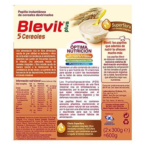 Blevit - Papilla 5 Cereales Superfibra Blevit Plus 700 gr 5m+
