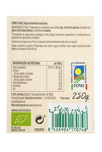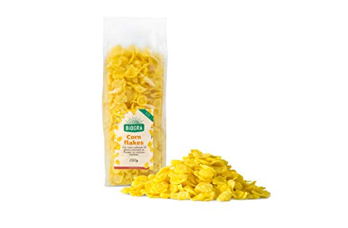 - Los cereales ecológicos de maíz no contienen azúcares añadidos ni gluten y se producen en Europa. Este producto contiene 250 gramos de corn flakes.