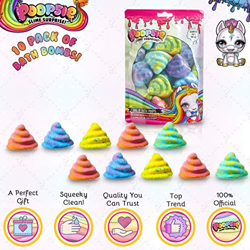 - ā EL SET INCLUYE --- Esta divertida bolsa de poopsie slime surprise incluye 10 bombas de baƱo efervescentes unicornio con los colores del arco iris que incluyen el rosa, azul, pĆŗrpura, amarillo y verde. Ā”Selecciona una diferentes cada dia y disfruta de las increĆbles fragancias que desprenden!