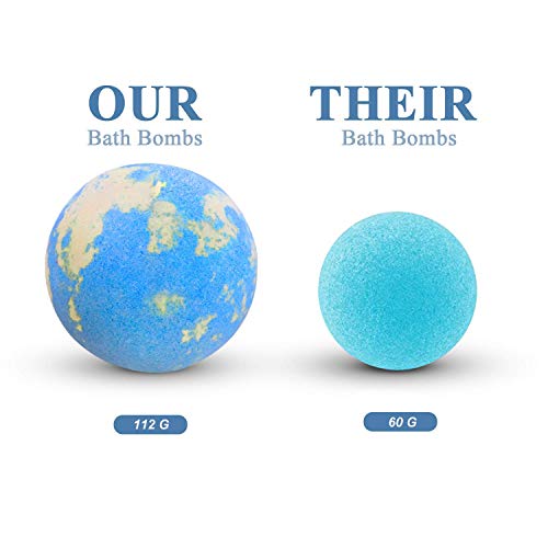 - ? 12 Colores ? Cada bomba de baƱo hecha a mano pesa 3 OZ (2.2 pulgadas de diƔmetro, mƔs grande que una pelota de golf), todas con efectos de mƔs duraderos, le brindan una experiencia de nivel de spa con un baƱo colorido natural