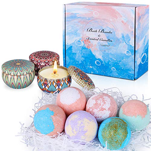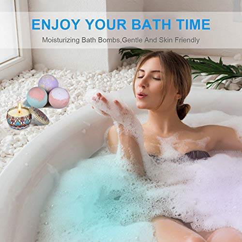 Aottom 6 Piezas Bombas de Baño y 3 Velas Aromaticas Perfumadas Set de Regalo de Bomba de Baño Bath Ball Natural Spa para el cuidado y la relajación, Regalos para Mujeres, MamÔ, Novia