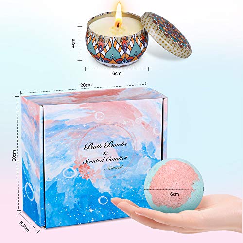 LA BELLEFĆE Bombas de BaƱo Aromaterapia de BaƱo Bolas Productos de BaƱo Imprescindibles, BaƱo de Burbujas, Sales de BaƱo,Vela perfumada Juego Set de 6 (4 x Bombas de BaƱo 2 x Vela perfumada)