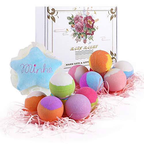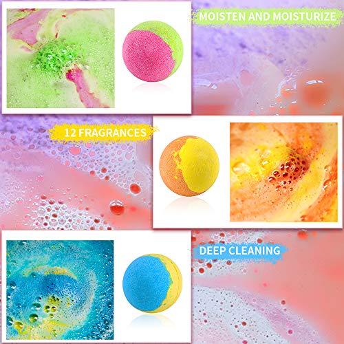 mreechan Bombas de BaƱo,12 piezas Bombas de BaƱo, Set Bolas de BaƱo con Aceites Esenciales,Bombas de baƱo de spa fragante Regalo de boda o cumpleaƱos para mujer, hombre, niƱos, relajarse