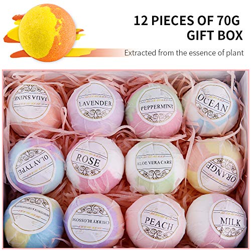 - Juego de regalo de 12 piezas para bombas de baƱo: juego de regalo de mreechan Bath Bomb con 12 fragancias diferentes, que incluyen lavender,peppermint,ocean,rose,aloe vera care,orange,honeytruck & chrysanthemum,cherry blossom,peach,milk etc.Elija un bombas de baƱo a sus necesidades. El set de bomba de baƱera se empaqueta individualmente y se empaca en una hermosa caja de regalo, ideal para cumpleaƱos, bodas, dĆa de la madre y regalos de San ValentĆn.