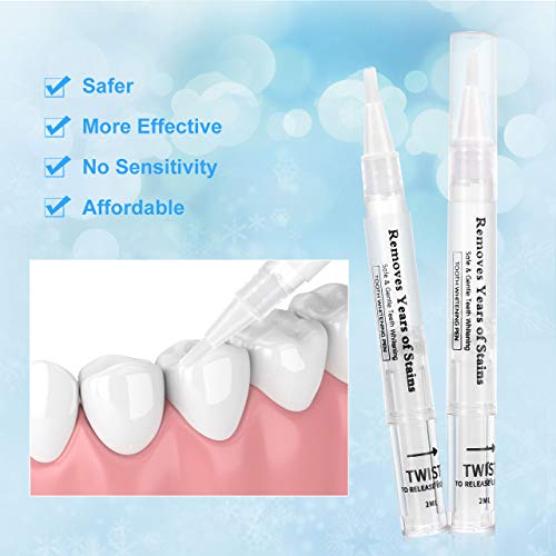 - [SEGURO EN DIENTES SENSIBLES]: El lápiz blanqueador de dientes profesional contiene una fórmula natural, se disuelve limpiamente dejando un regusto a menta refrescante. Los ingredientes no tienen sensibilidad, por lo que el gel no dañará sus encías ni sus dientes.