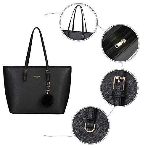 Bolso Mujer Bolsos Bandolera para Ordenador Portátil 15.6 Pulgadas Impermeable Bolsos de Mujer Cuero PU Universidad Shopper Bolsa Tote Negro
